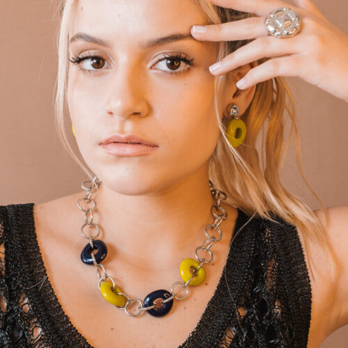 Colar Alegria – resina azul e verde no banho de prata