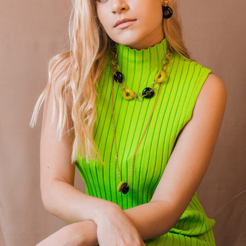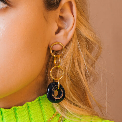 Brinco Ousadia – resina verde e corrente no banho de prata