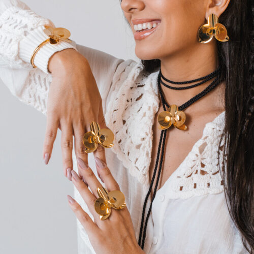 Colar Urbana – resina acrílica rosa e banho de ouro