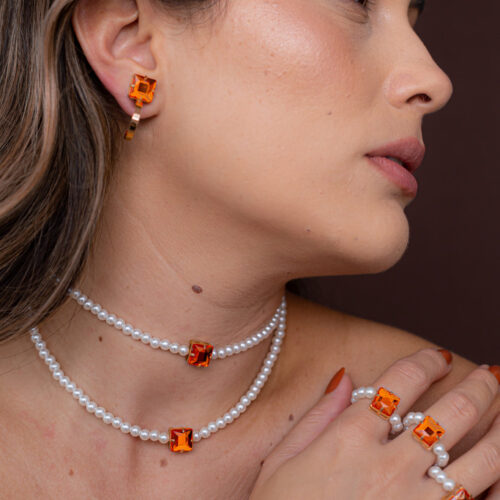 Brinco Castelo – esmaltação e corrente no banho de ouro
