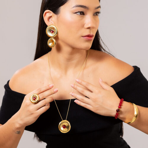 Pulseira Sol Nascente – vermelha no banho de ouro