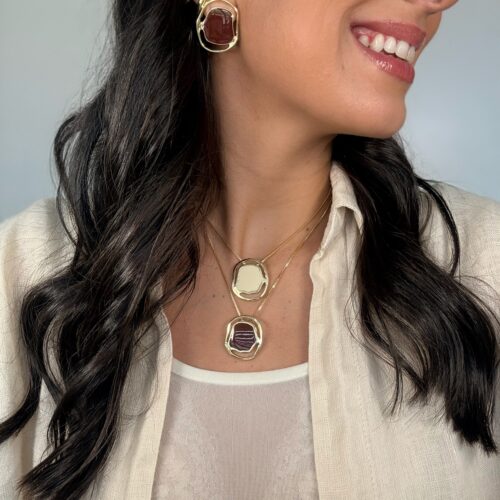Colar Simone Longo - miçanga irisada e banho de ouro