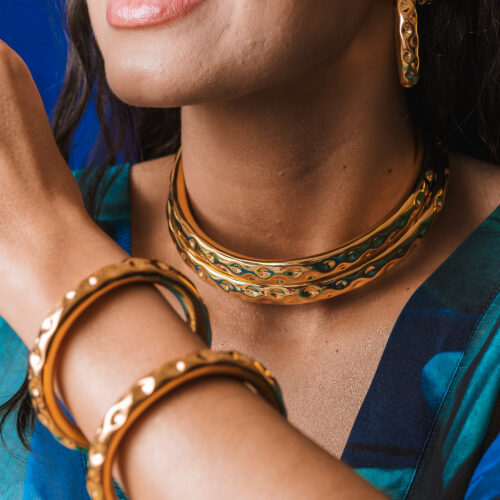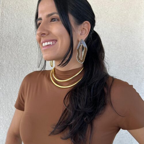Brinco Amor-Próprio – esmaltação azul e banho de ouro