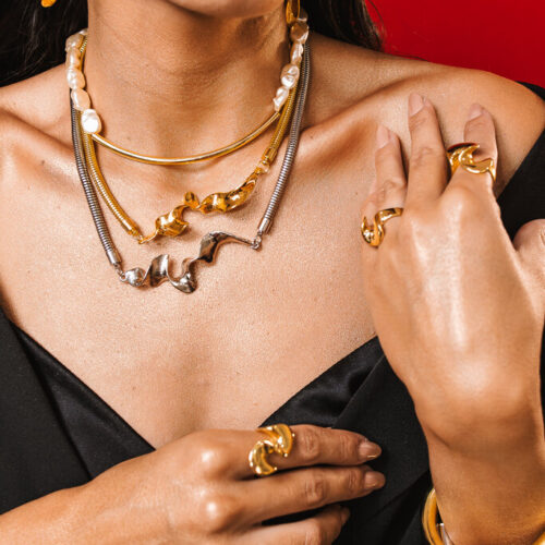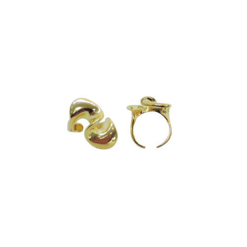 Anel médio com formato orgânico e espiral no banho de ouro, leve. Consulte a aba “dicas de conservação” ou vide a etiqueta afixada ao produto para ciência sobre os cuidados com a peça.