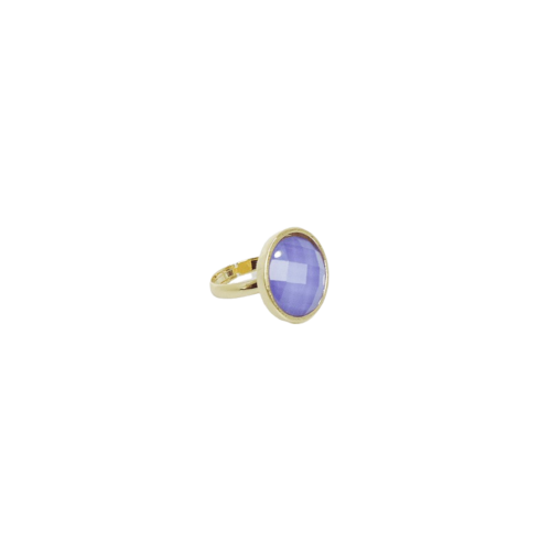 Anel Luz- banho de ouro e pedra de vidro lilás