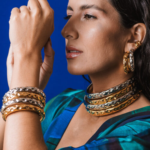 Argola grande no banho diamante com detalhes em texturas, super leve. Consulte a aba “dicas de conservação” ou vide a etiqueta afixada ao produto para ciência sobre os cuidados com a peça.