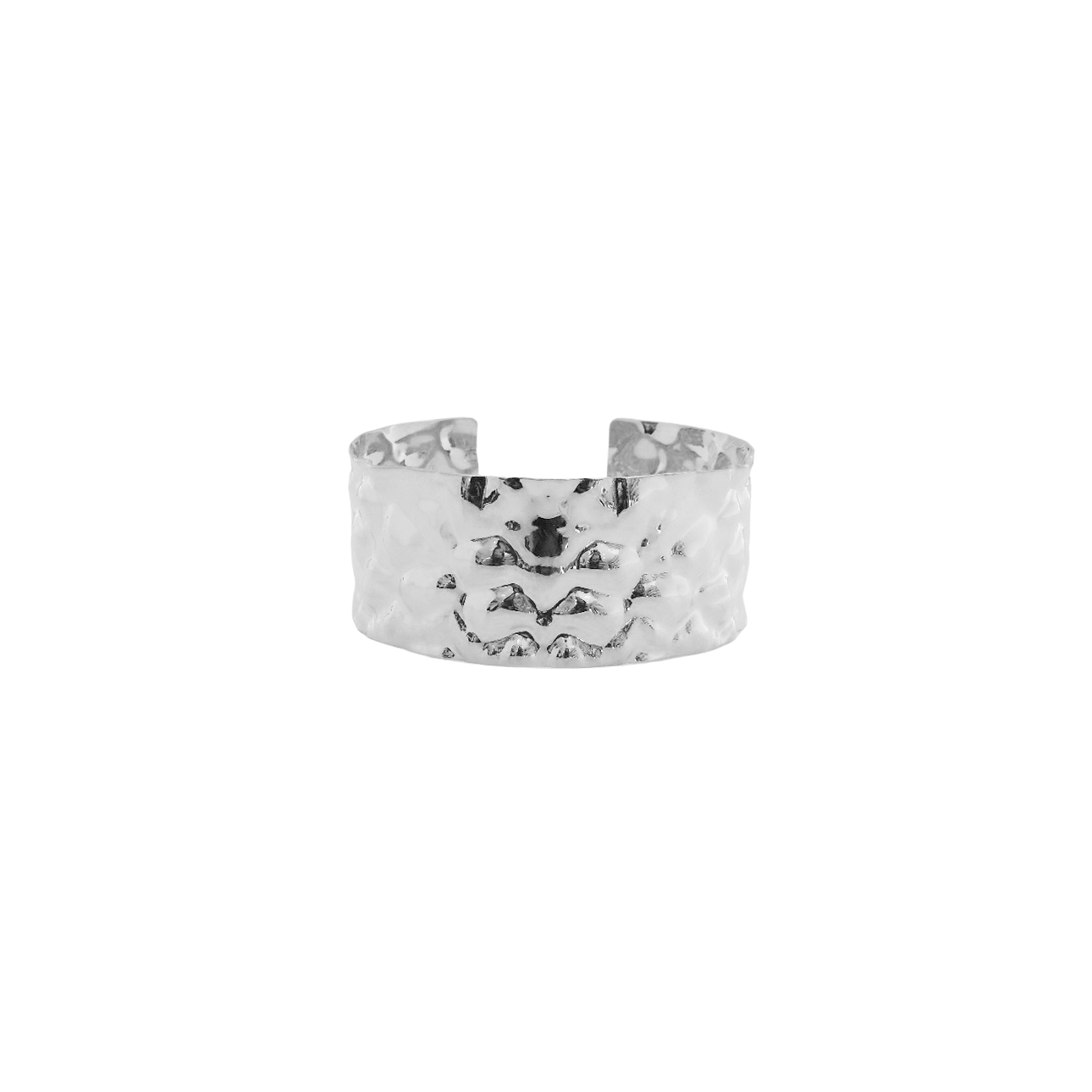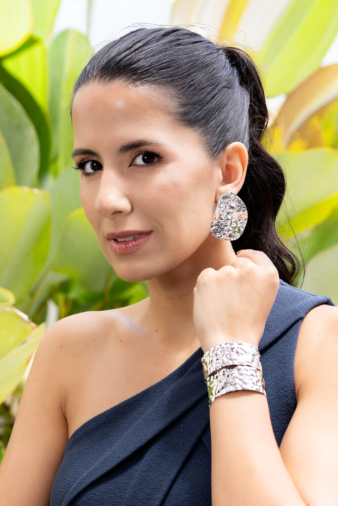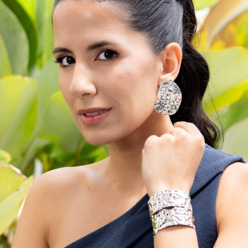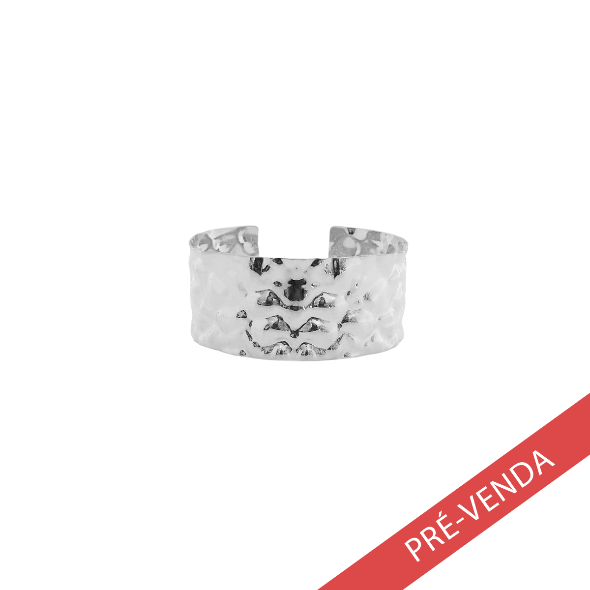 Bracelete de chapa texturizada no banho diamante, super leve. *Consulte a aba “dicas de conservação” ou vide a etiqueta afixada ao produto para ciência sobre os cuidados com a peça.
