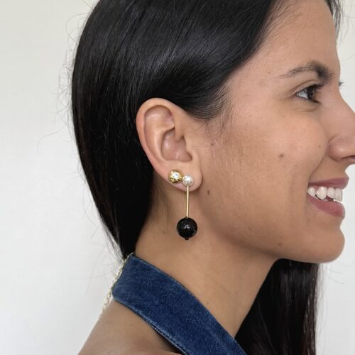 Brinco 4 em 1. Acompanha um par de pinos com pérola e um par de ponto de luz com cristal branco no banho de ouro. Pode ser usado com a extensão de pedra acrílica redonda na cor preta ou somente o pino.*Consulte a aba “dicas de conservação” ou vide a etiqueta afixada ao produto para ciência sobre os cuidados com a peça.