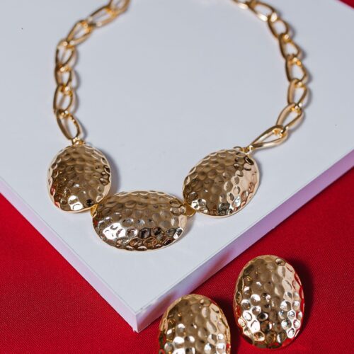 Brinco médio com formato oval, todo texturizado e banho de ouro, leve. *Consulte a aba “dicas de conservação” ou vide a etiqueta afixada ao produto para ciência sobre os cuidados com a peça.