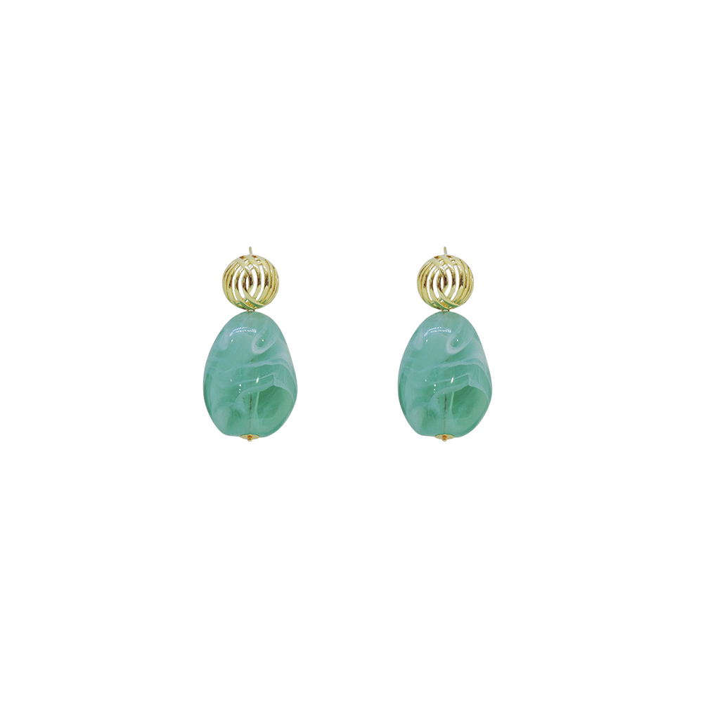 Voltar à LojaBrinco de resina azul turquesa e base redonda no banho de ouro.