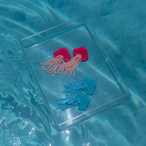 Brinco grande com resina rosa e franjas de miçangas, super leve. Consulte a aba “dicas de conservação” ou vide a etiqueta afixada ao produto para ciência sobre os cuidados com a peça.