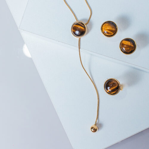 Brinco botão pequeno em banho de ouro e pedra Olho de Tigre, super leve. Por se tratar de um produto com materiais naturais, as peças podem sofrer diferenças de tonalidades. Consulte a aba “dicas de conservação” ou vide a etiqueta afixada ao produto para ciência sobre os cuidados com a peça.