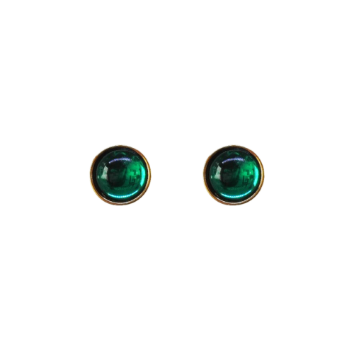 Brinco botão pequeno em banho de ouro e resina verde.