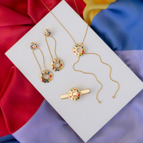 Após uma viagem para Portugal, nossa designer Maryana Mauler trouxe uma inspiração que é considerada uma das 7 maravilhas de Portugal. Brinco inspirado nas cores da fachada do Castelo da Pena, o monumento mais visitado do país. Brinco grande com duas bases de formato orgânico, sendo uma maior e outra menor, com corrente no banho de ouro e emaltação nas cores azul, vermelho e amarelo, super leve. Consulte a aba “dicas de conservação” ou vide a etiqueta afixada ao produto para ciência sobre os cuidados com a peça.