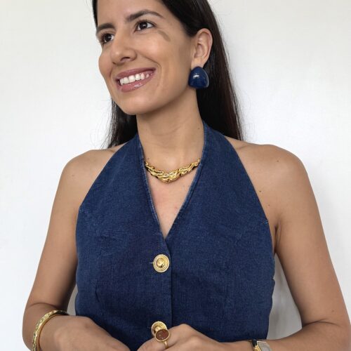 Brinco médio de resina azul marinho, super leve .Consulte a aba “dicas de conservação” ou vide a etiqueta afixada ao produto para ciência sobre os cuidados com a peça.