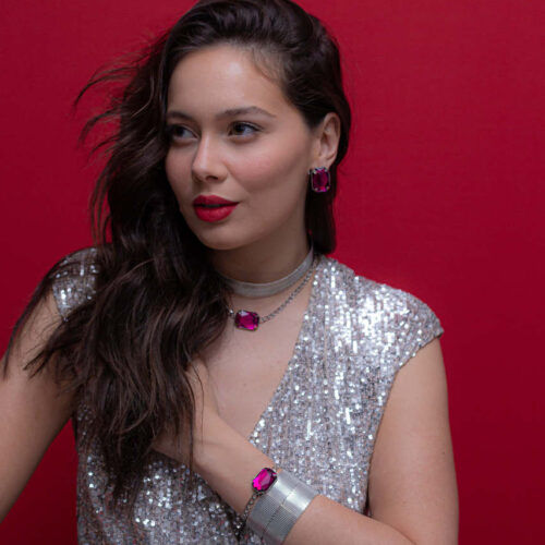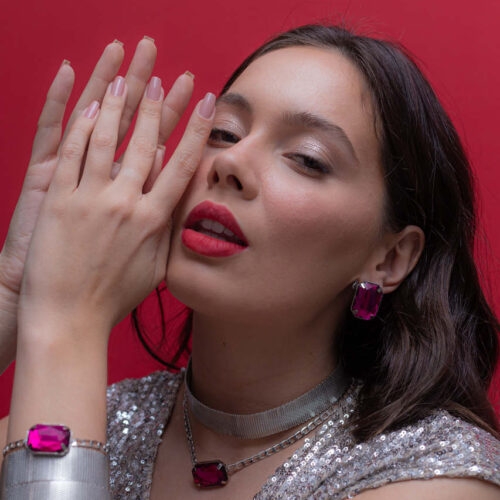 Brinco pequeno com resina fúscia no banho diamante, super leve. Consulte a aba “dicas de conservação” ou vide a etiqueta afixada ao produto para ciência sobre os cuidados com a peça.