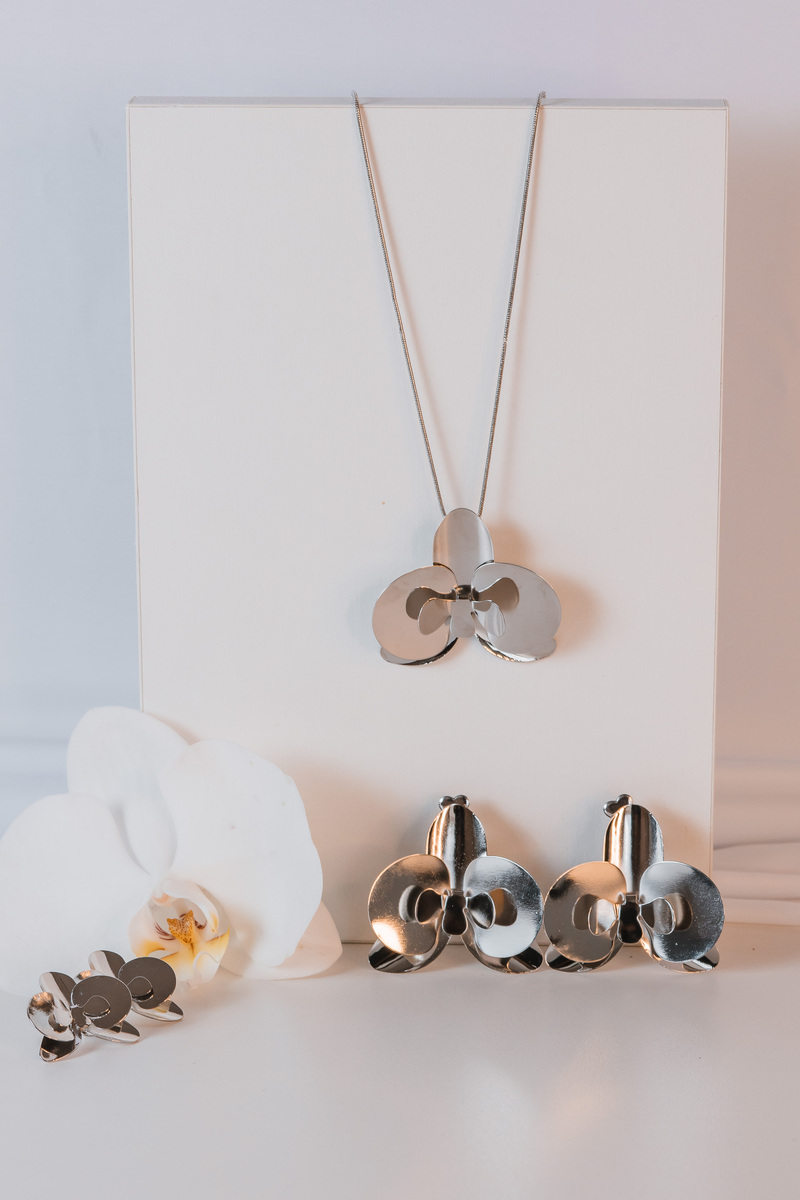 Brinco pequeno no banho diamante todo detalhado em formato de orquídea, super leve. Consulte a aba “dicas de conservação” ou vide a etiqueta afixada ao produto para ciência sobre os cuidados com a peça.