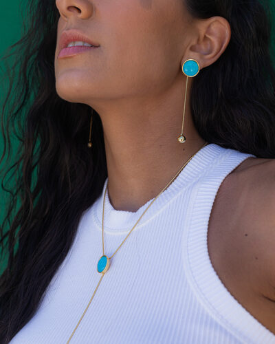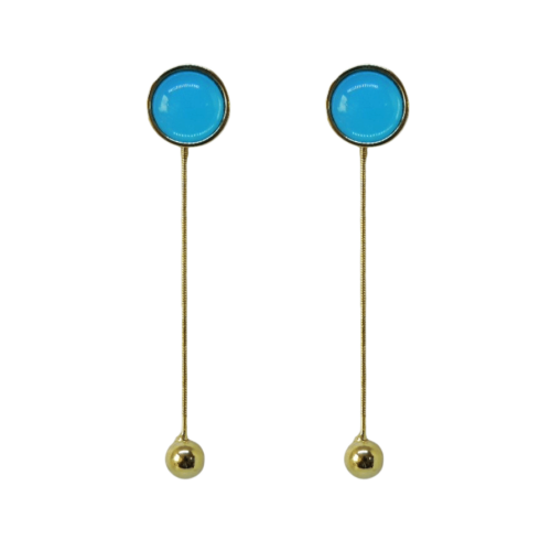 Voltar à LojaBrinco botão longo com corrente no banho de ouro e resina azul turquesa.