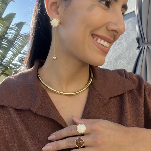 Voltar à LojaBrinco longo com resina off white no banho de ouro.