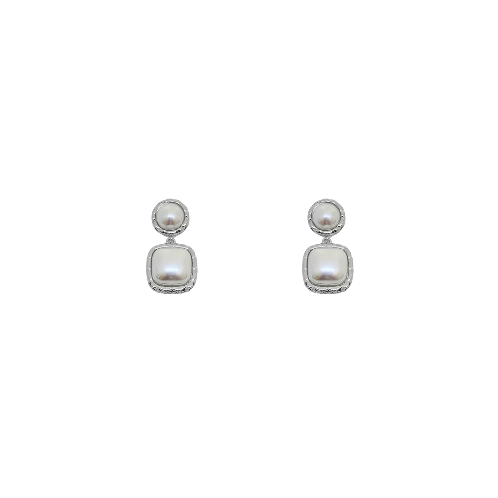 Brinco médio no banho diamante, com duas bases – uma circular e uma quadrada -, textura trançada nas bordas e pérola no centro, leve. Consulte a aba “dicas de conservação” ou vide a etiqueta afixada ao produto para ciência sobre os cuidados com a peça.