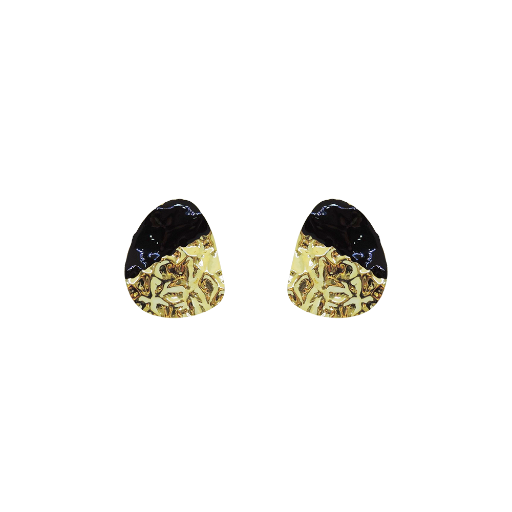 Brinco oval texturizado no banho de ouro e esmaltação preta.