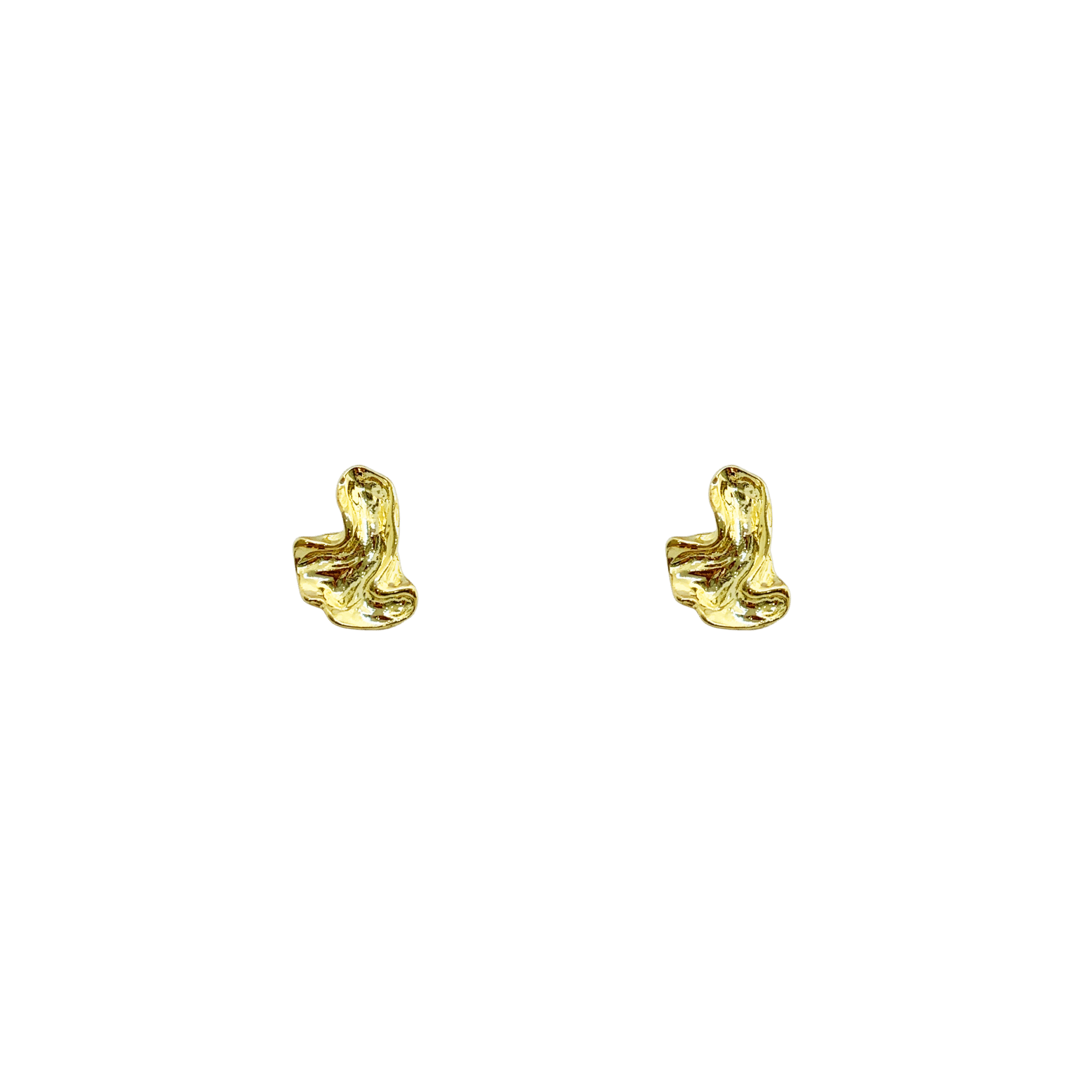 Brinco pequeno com formato orgânico no banho de ouro, super leve. *Consulte a aba “dicas de conservação” ou vide a etiqueta afixada ao produto para ciência sobre os cuidados com a peça.