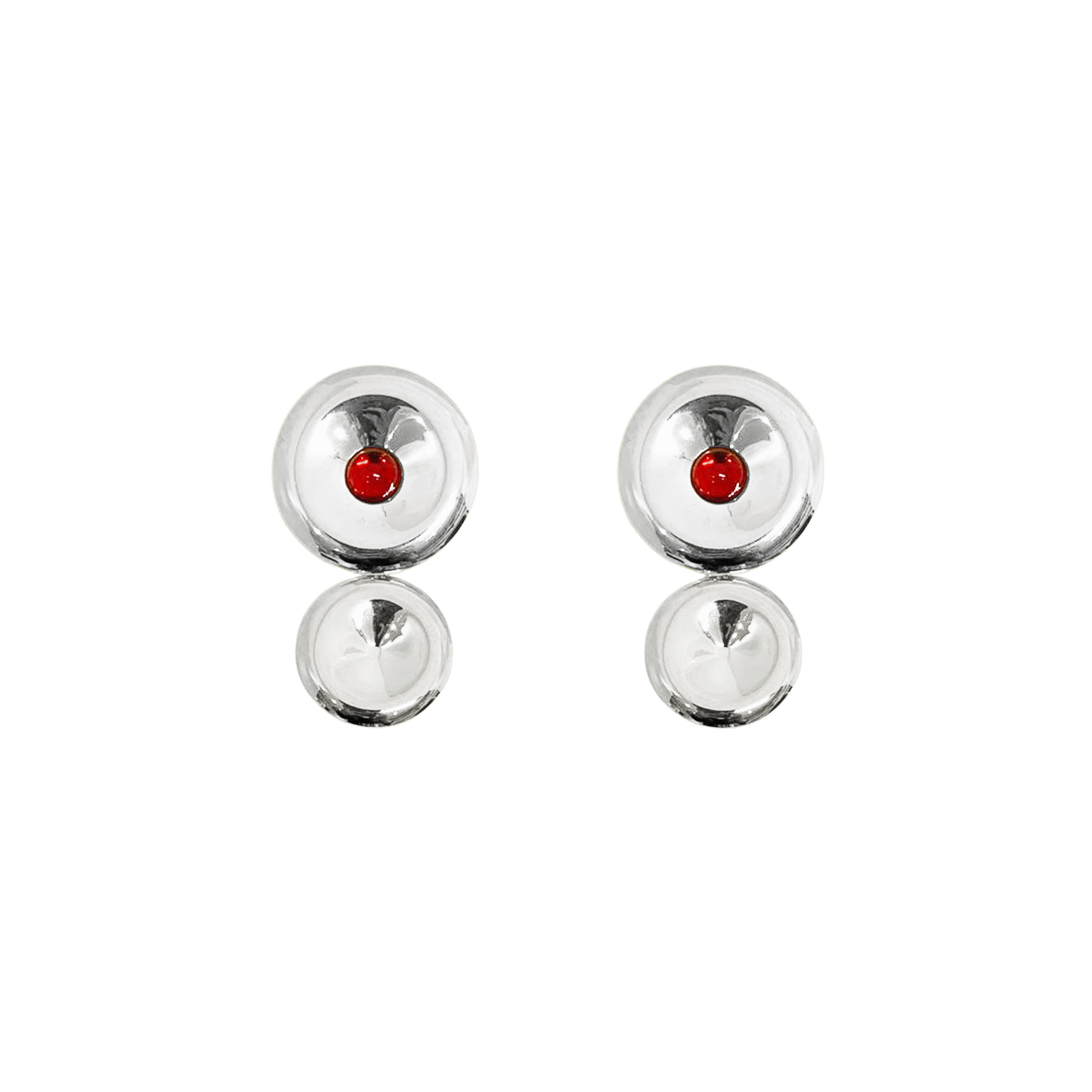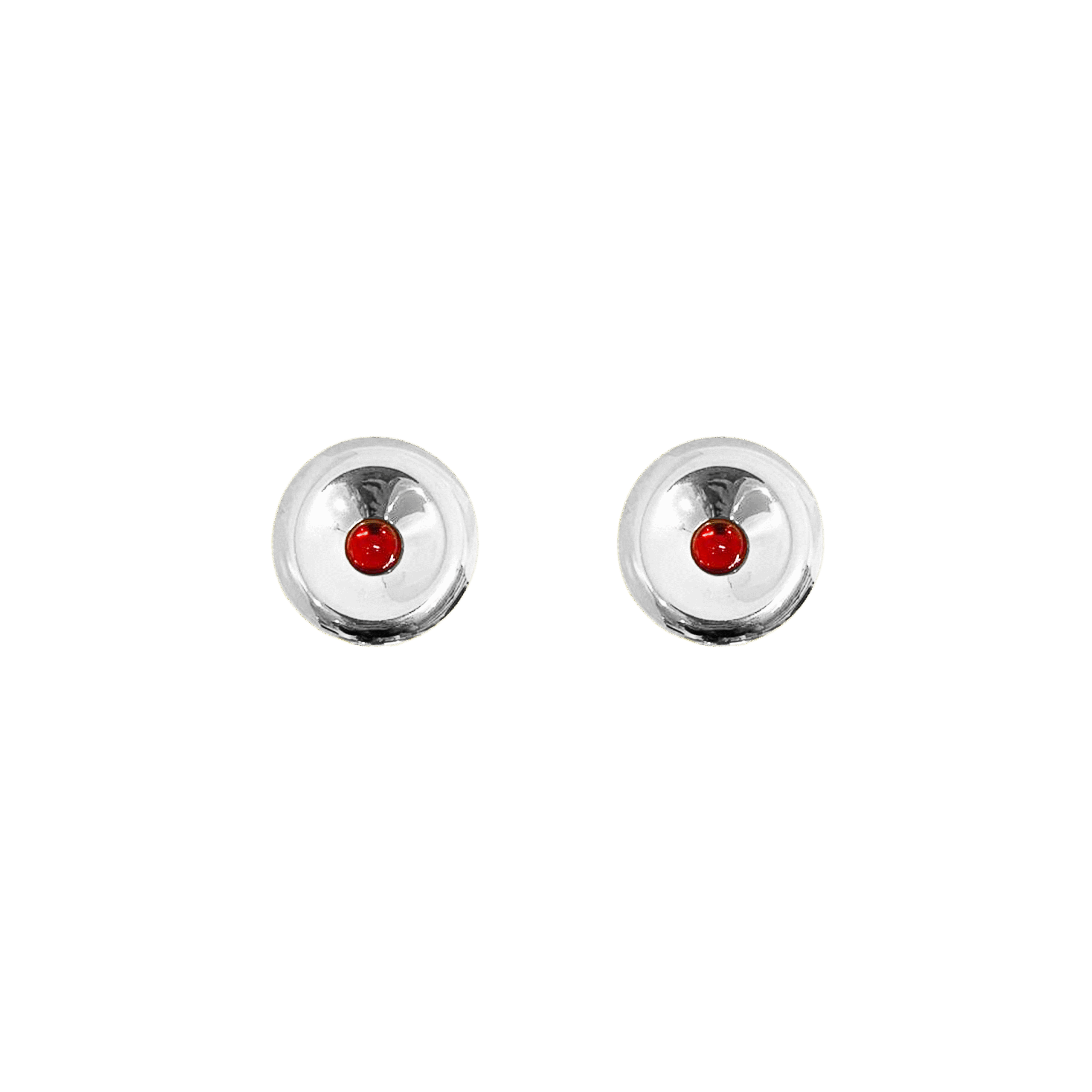 Brinco 2 em 1 redondo com pedra acrílica vinho e banho diamante.