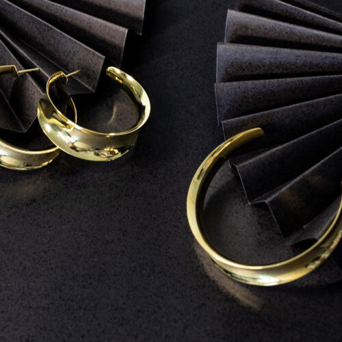 Argola média de chapa curvada no banho de ouro, super leve. *Consulte a aba “dicas de conservação” ou vide a etiqueta afixada ao produto para ciência sobre os cuidados com a peça.