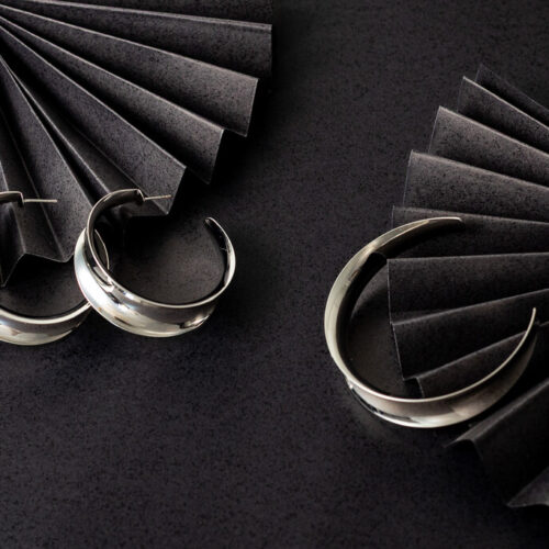 Argola média de chapa curvada no banho diamante, super leve. *Consulte a aba “dicas de conservação” ou vide a etiqueta afixada ao produto para ciência sobre os cuidados com a peça.