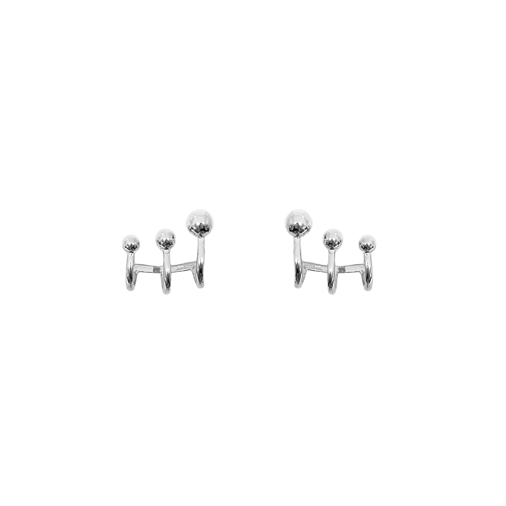 Brinco médio com formato espiral e bolas no banho diamante, super leve. *Consulte a aba “dicas de conservação” ou vide a etiqueta afixada ao produto para ciência sobre os cuidados com a peça.