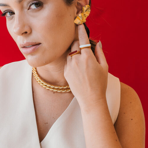 Voltar à LojaEar cuff texturizado no banho de ouro.