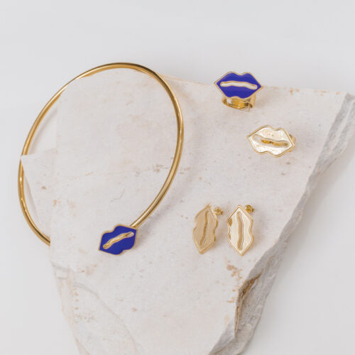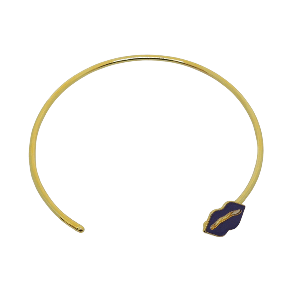 Choker assimétrica no banho de ouro e pingente boca esmaltado na cor roxa. Consulte a aba “dicas de conservação” ou vide a etiqueta afixada ao produto para ciência sobre os cuidados com a peça.