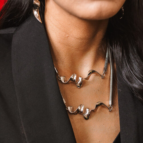 Colar médio no banho diamante com corrente oval e pingente em formato orgânico espiral. Possui extensor de 10cm. *Consulte a aba “dicas de conservação” ou vide a etiqueta afixada ao produto para ciência sobre os cuidados com a peça.