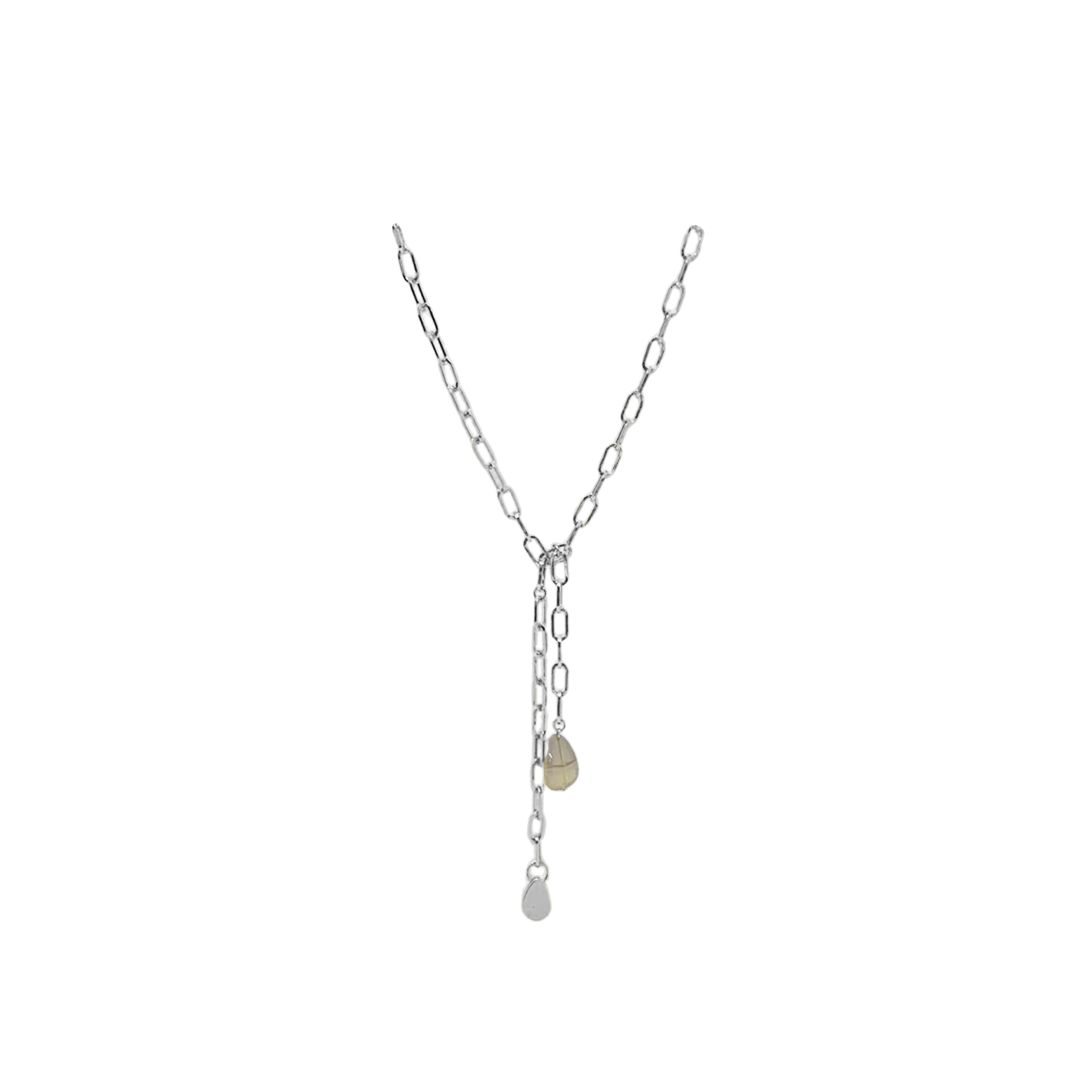 Colar longo com corrente estilo cartier, pedra natural Ágata e pingente com formato de gota no banho diamante. Possui extensor de 10cm. *Consulte a aba “dicas de conservação” ou vide a etiqueta afixada ao produto para ciência sobre os cuidados com a peça.