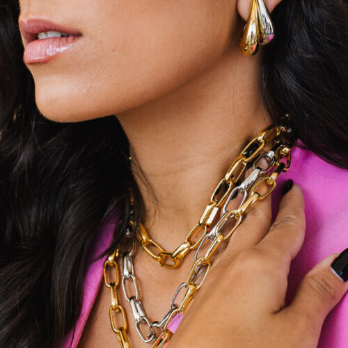 Colar curto com corrente de elos grossos no banho diamante. Possui extensor de 10cm. *Consulte a aba “dicas de conservação” ou vide a etiqueta afixada ao produto para ciência sobre os cuidados com a peça.
