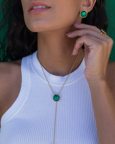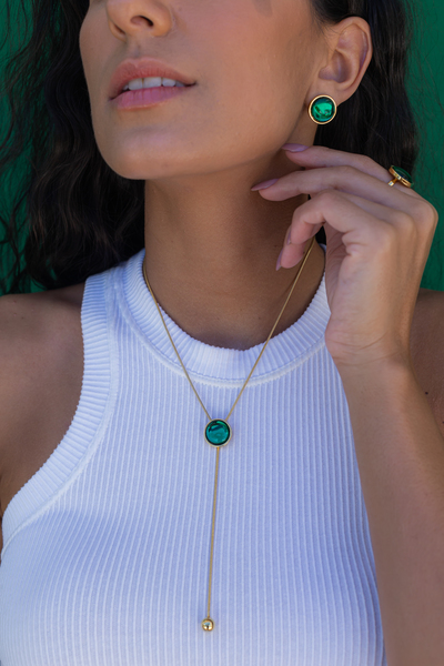 Colar Equilíbrio – gravatinha resina verde e banho de ouro