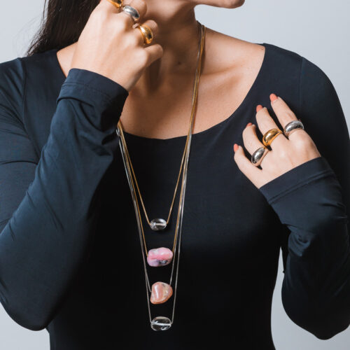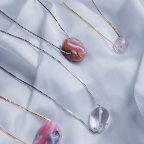 Colar longo com pedra natural Opala Rosa, no banho diamante. Possui extensor de 10cm. Por se tratar de um produto com materiais naturais, as peças podem sofrer diferenças de tonalidades e tamanhos.*Consulte a aba “dicas de conservação” ou vide a etiqueta afixada ao produto para ciência sobre os cuidados com a peça.