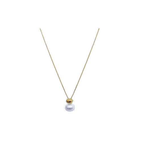 Colar com pingente de bolas orgânicas no banho de ouro e pérola shell.
