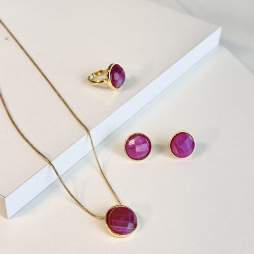 Colar em banho de ouro com pedra natural Ágata na cor rosa.