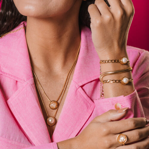 COLAR C/ PINGENTE MADREPEOLA BANHO DE OURO.