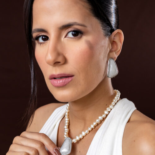Colar curto de pérolas e pingente orgânico com esmaltação no banho diamante