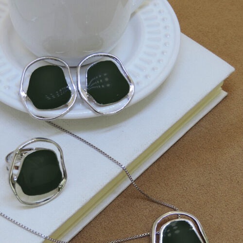 Colar curto com pingente orgânico no banho diamante e esmaltação na cor verde. Possui extensor de 10cm. *Consulte a aba “dicas de conservação” ou vide a etiqueta afixada ao produto para ciência sobre os cuidados com a peça.