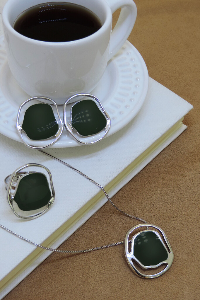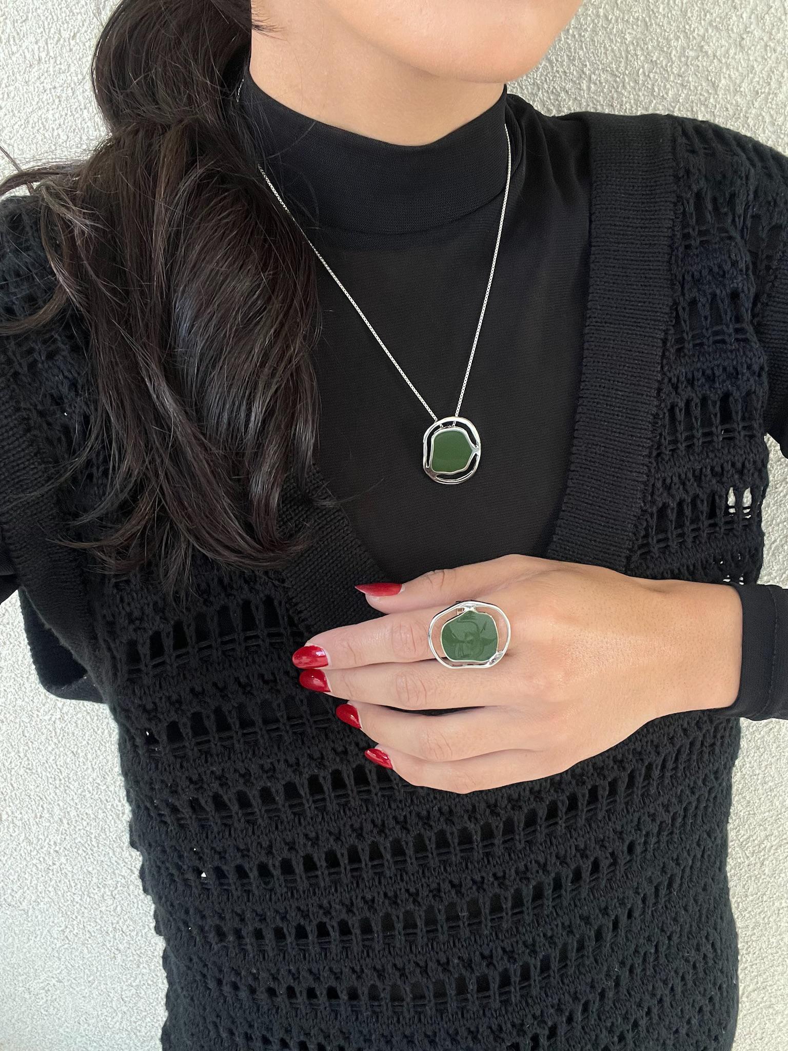 Colar Marina – resina verde e banho de prata