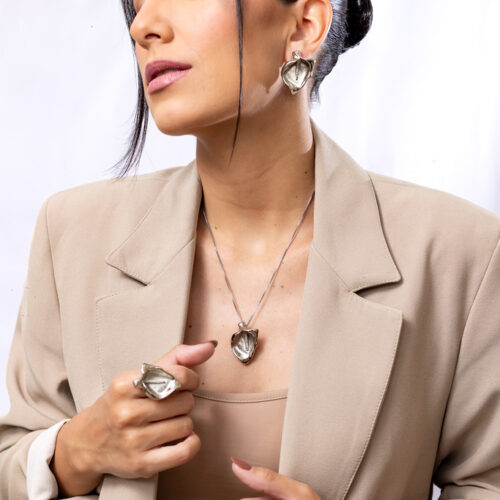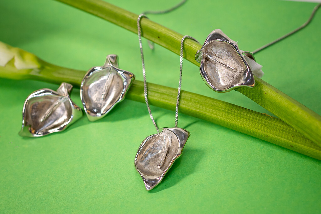 Colar no banho diamante com pingente em formato da flor Copo-de-leite estilizada, corrente veneziana delicada e acabamento polido. Possui extensor de 10cm. *Consulte a aba “dicas de conservação” ou vide a etiqueta afixada ao produto para ciência sobre os cuidados com a peça.
