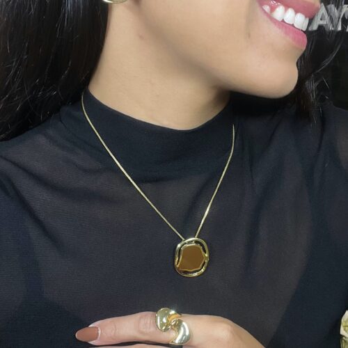 Colar com pingente orgânico marrom no banho de ouro.
