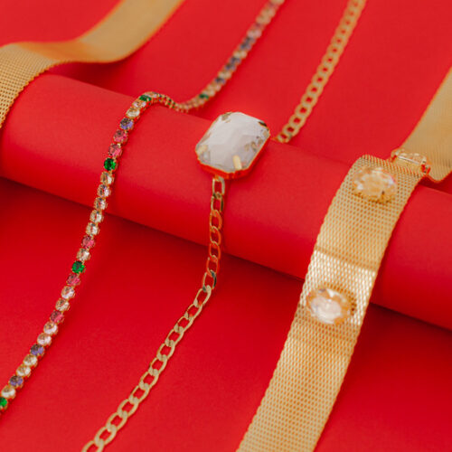 Colar curto com zircônia colorida no banho de ouro. Extensor de 10cm. Consulte a aba “dicas de conservação” ou vide a etiqueta afixada ao produto para ciência sobre os cuidados com a peça.