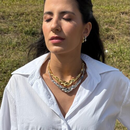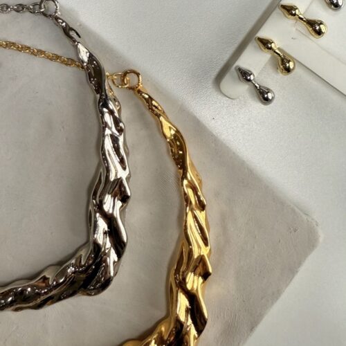 Colar curto no banho diamante com corrente delicada e pingente grande em formato orgânico. Possui extensor de 10cm. *Consulte a aba “dicas de conservação” ou vide a etiqueta afixada ao produto para ciência sobre os cuidados com a peça.
