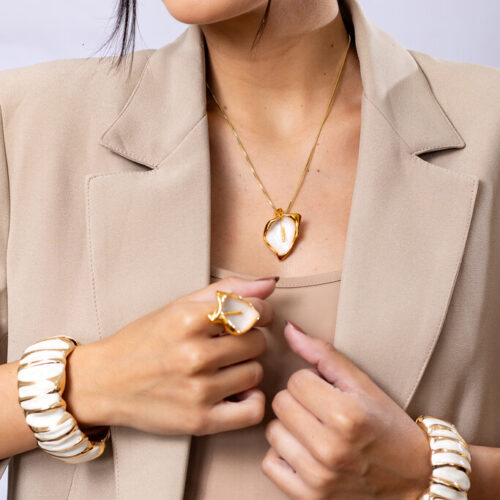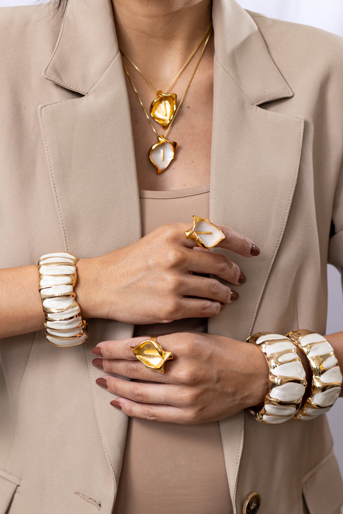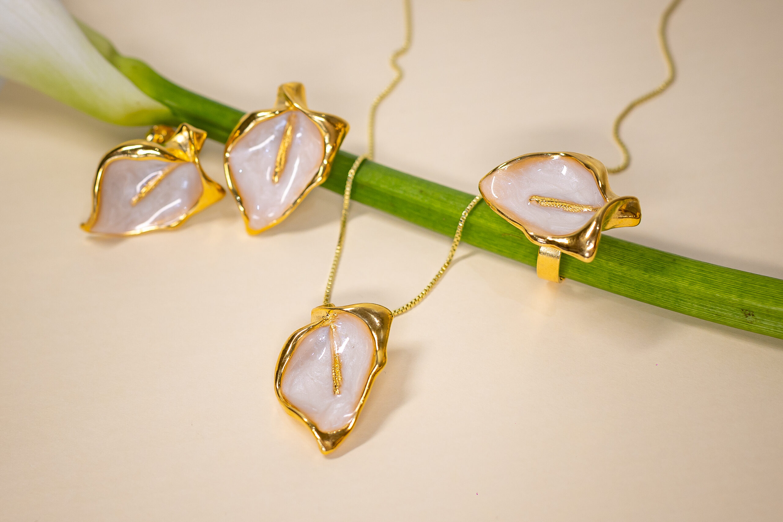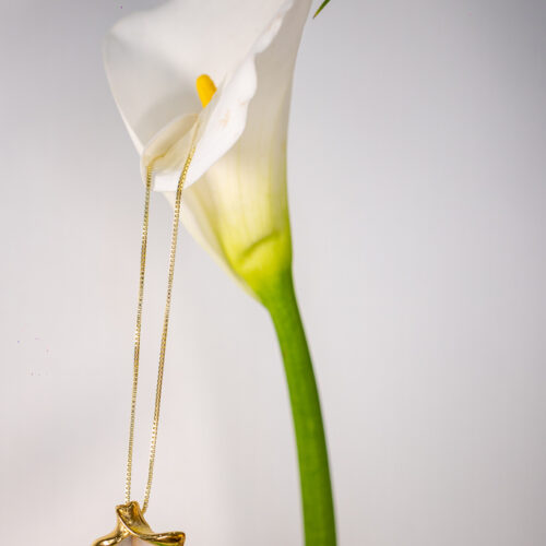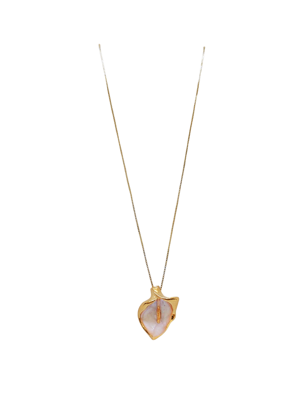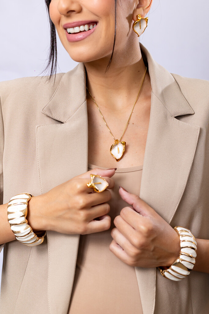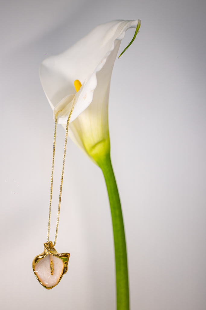 Colar no banho de ouro esmaltado com pingente em formato da flor copo-de-leite estilizada, corrente veneziana delicada e acabamento polido. Possui extensor de 10cm. *Consulte a aba “dicas de conservação” ou vide a etiqueta afixada ao produto para ciência sobre os cuidados com a peça.