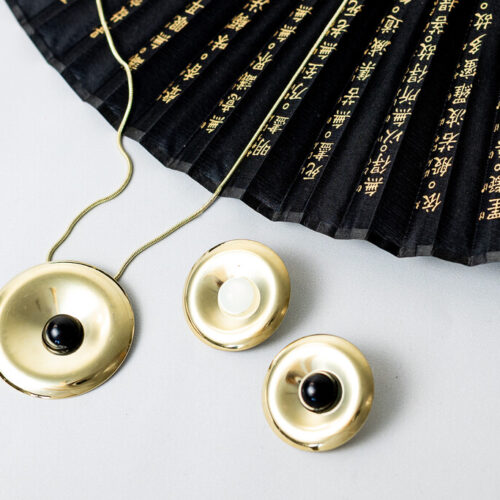 Colar longo com corrente delicada e pingente de chapa redonda no banho de ouro e pedra acrílica na cor preta. Possui extensor de 6cm. *Consulte a aba “dicas de conservação” ou vide a etiqueta afixada ao produto para ciência sobre os cuidados com a peça.