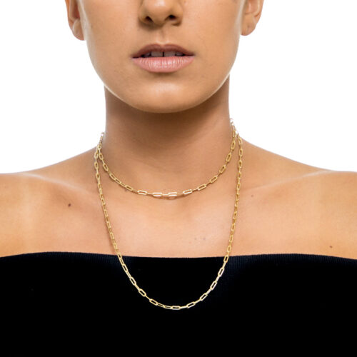 Colar longo com corrente cartier no banho diamante. Possui extensor de 10cm. *Consulte a aba “dicas de conservação” ou vide a etiqueta afixada ao produto para ciência sobre os cuidados com a peça.